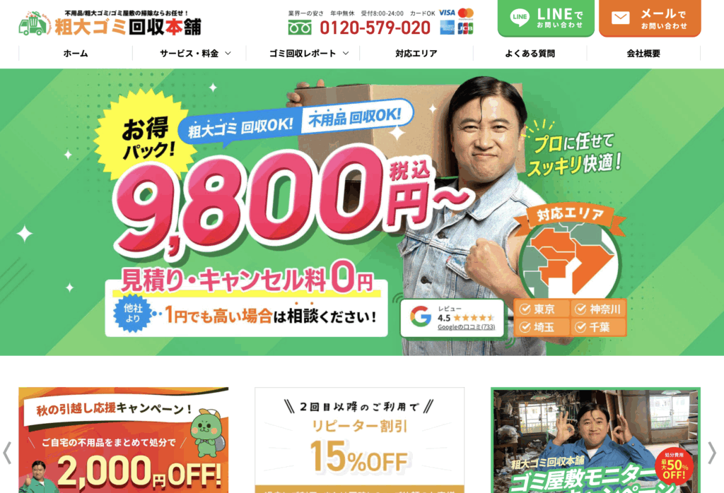 | 粗大ゴミ回収本舗 | 9,800円〜 | 粗大ゴミ回収専用パック | 定額制。市川市対応と記載あり |
